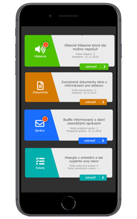 Mobilná aplikácia – je v dnešnej dobe už najbežnejšou formou informovania, rýchlou, časovo nenáročnou a pre mnohých moderných ľudí nevyhnutnou. Pre tých skôr narodených tu samozrejme ostáva forma informovania prostredníctvom hlásenia miestneho rozhlasu. Mobilná aplikácia funguje jednoducho, občan si nainštaluje aplikáciu do svojho mobilného telefónu, zaregistruje svoje meno, adresu, e-mailovú adresu, telefónne číslo, označí ulicu na ktorej býva a môže dostávať informácie z miestneho úradu prostredníctvom hlásení mobilného telefónu.
